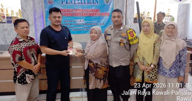 Kegiatan yang berlangsung di Aula Desa Rawa tersebut dimonitor langsung oleh Bhabinkamtibmas Desa Rawa Polsek Kawali Polres Ciamis, BRIPKA Dede Herdiansah. Penyaluran insentif ini merupakan alokasi periode Januari, Februari, dan Maret Tahun Anggaran 2026 yang bersumber dari Dana Desa, dengan penanggung jawab Kepala Desa Rawa, Sdr. Asep Saepul Amsyar.