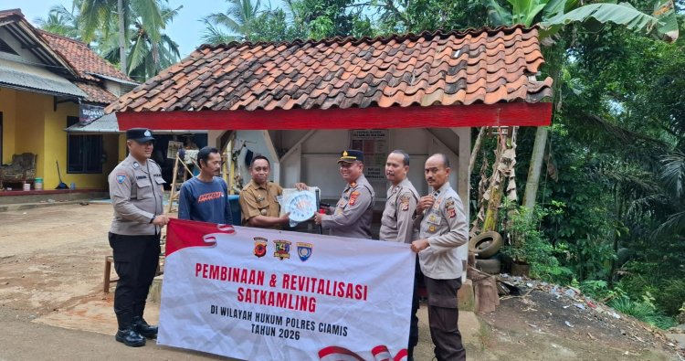 CIAMIS ~ Satuan Binmas Polres Ciamis Polda Jabar melaksanakan revitalisasi Satkamling di lingkungan masyarakat dalam rangka meningkatkan kewaspadaan dan keamanan serta ketertiban. Revitalisasi kali ini dilaksanakan ke sejumlah Satkamling di wilayah Desa Jelegong, Kecamatan Cidolog, Kabupaten Ciamis, Jawa Barat, Rabu (22/4/2026).